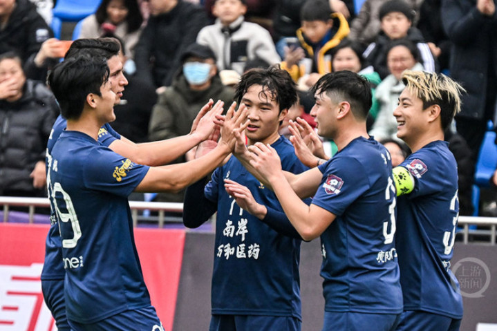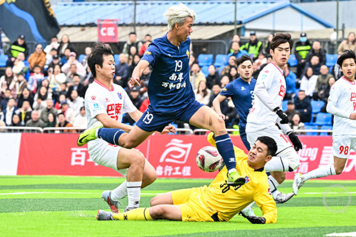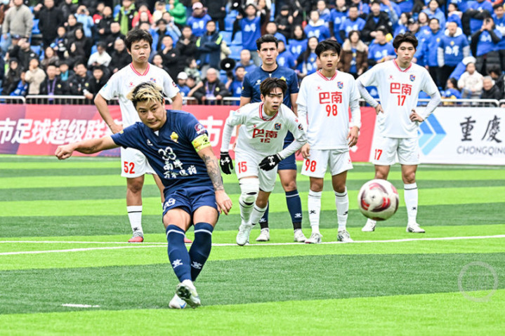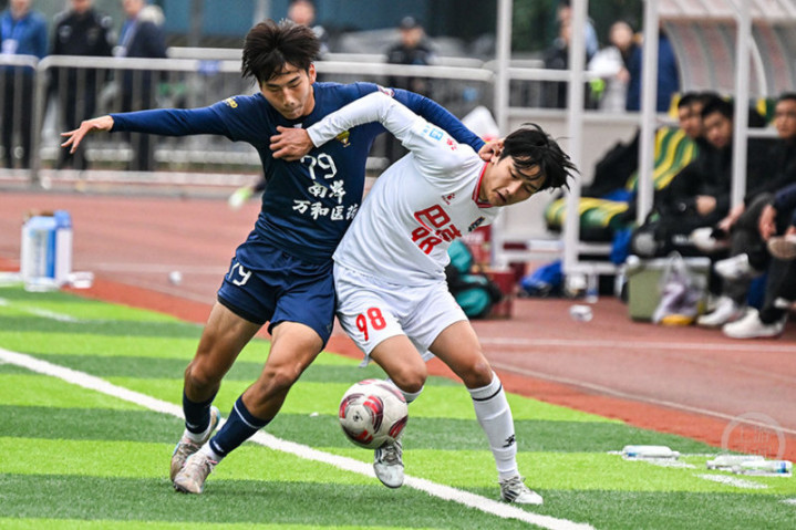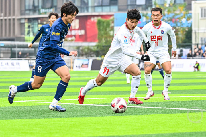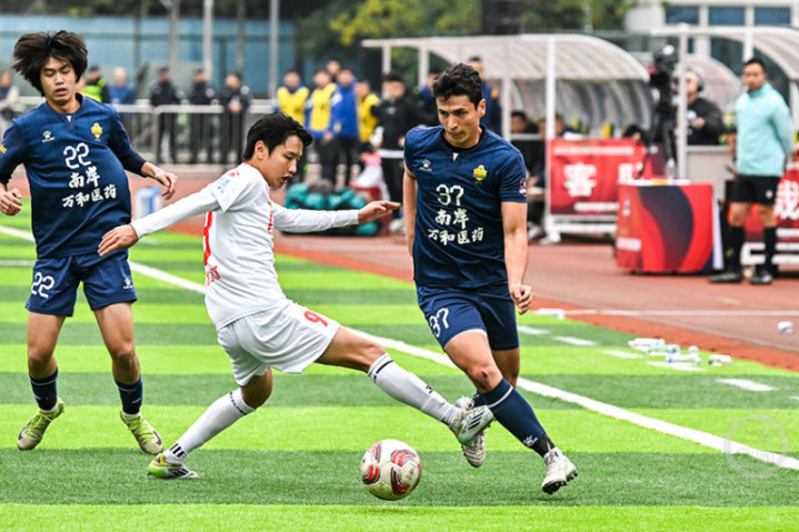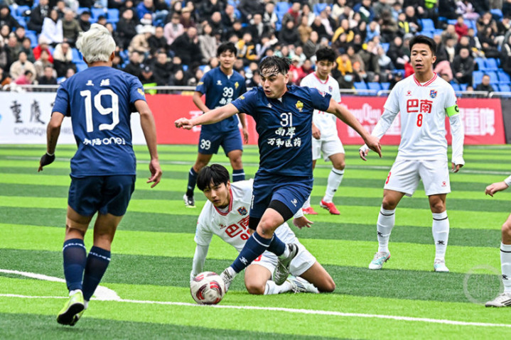 12月14日下午,“渝超”联赛再燃战火,南岸万和医药队在重庆江南体育中心体育场迎战巴南生物城队。经过90分钟激烈角逐,南岸队以3比2力克对手。33号队长宋韩川发挥神勇,独中两元,成为本场比赛的MVP。